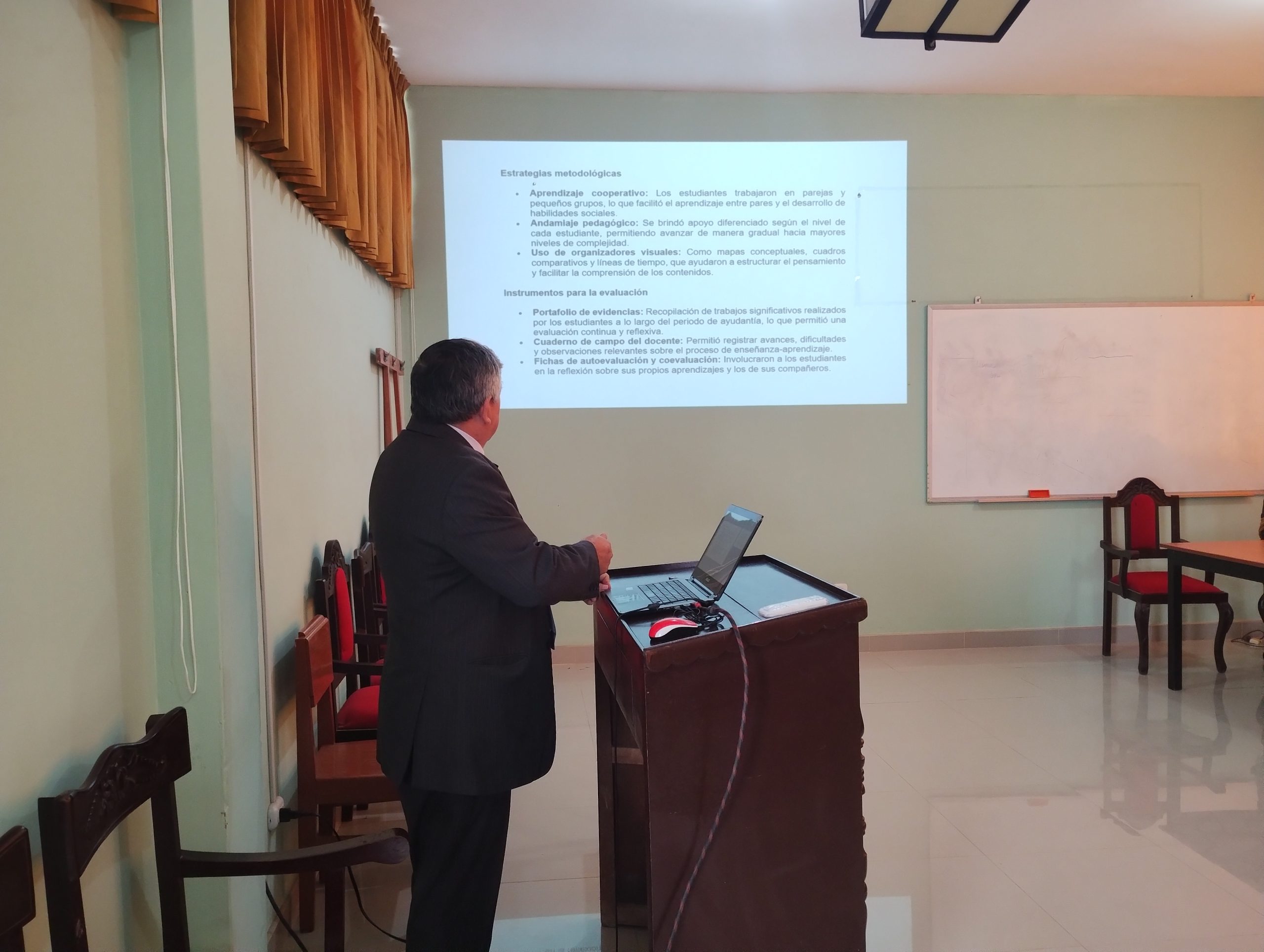 El 01 de agosto de 2025 es un día para recordar en la historia de nuestra EESPP «David Sánchez Infante». Nuestros estudiantes del X ciclo del Programa de Formación en Educación Primaria defendieron con excelencia sus Informes Finales del Módulo de Práctica e Investigación, demostrando que están listos para asumir el reto de educar a las nuevas generaciones.